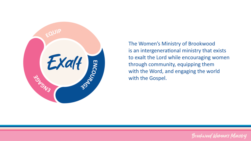 that exists to exalt the Lord while encouraging women through community, equipping them with the Word, and engaging the world with the Gospel.